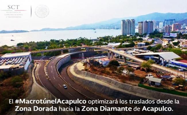 El titular de la SCT, Gerardo Ruiz Esparza, "puso en operación el Macrotúnel y los entronques Brisamar y Cayaco, que unen la zona tradicional de La Costera con la Diamante y el Aeropuerto Internacional de Acapulco", informó la institución en un boletín.
